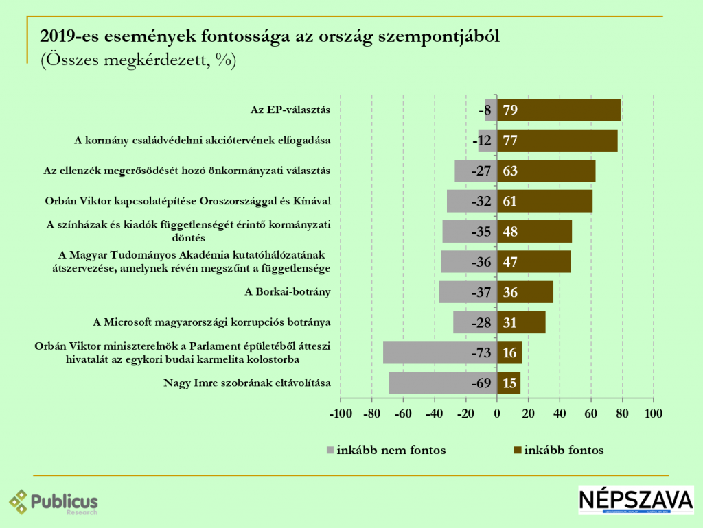A Publicus Intézet a Népszava megbízásából december 14-20 között 1002 fő megkérdezésével készített országos reprezentatív közvéleménykutatásban vizsgálta a 2019-es év fontos eseményeit.