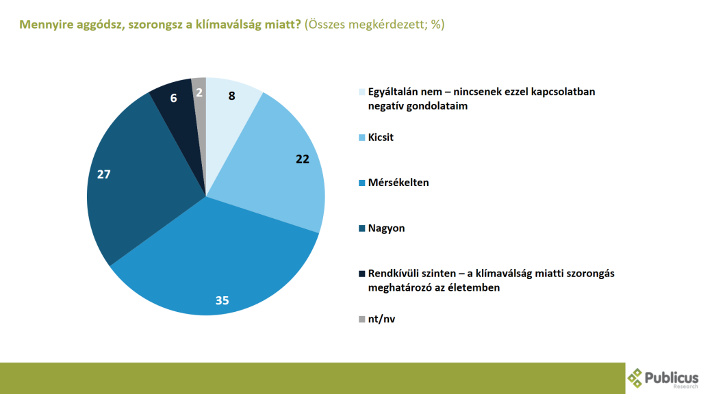 A reprezentatív felmérés szerint a 13-25 éves korosztály túlnyomó többségét napi szinten foglalkoztatják a klímaváltozás kérdései, 90 százalékuk állítja, hogy kifejezetten szorongást él meg a témával kapcsolatban. Lényeges visszajelzés, hogy a magyar fiatalok háromnegyede személyesen, áldozatok árán is kész tenni azért, hogy elkerülhessük a természeti katasztrófát