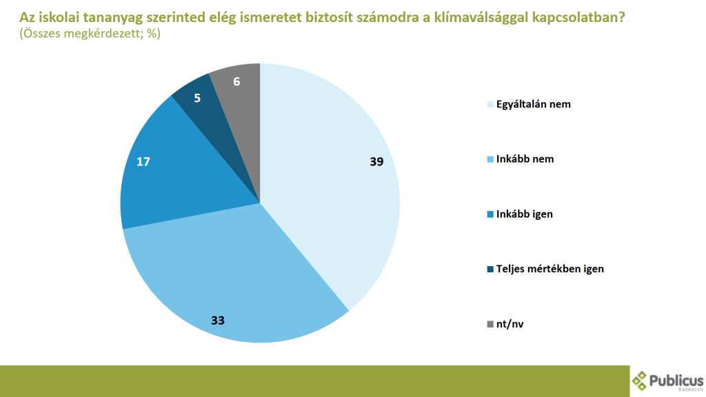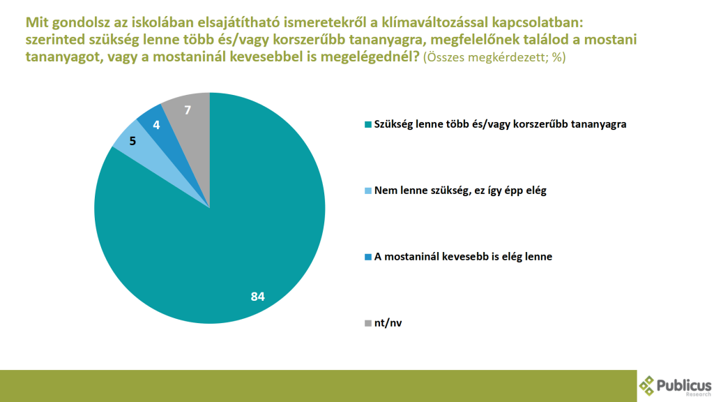 Ennél is még többen, 84 százalékban érzik úgy, hogy szeretnének több tudást kapni az iskolában a klímaváltozásról és a fenntarthatóságról.