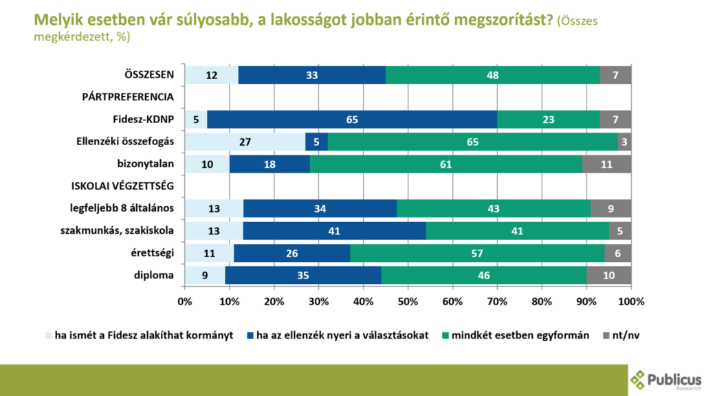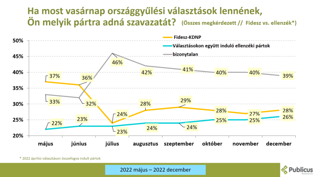 Mindezzel együtt, a Fidesz jelenleg kényelmetlen pozícióban van, bel- és külpolitikában úgyszintén, amit talán a bizonytalan szavazók kifejezetten magas aránya (39%) támaszt leginkább alá. Kérdés tehát, hogy vajon az idő és a tél múlásával elsimulnak-e majd a feszültségek a társadalomban, illetve ad-e a jövő évi önkormányzati választások közeledte újabb lendületet az ellenzéknek térnyerésre?  Az viszont újra bebizonyosodott: önmagában válságok még nem okozzák feltétlenül a rendszer összeomlását, vagy nyernek támogatást az ellenzéknek.