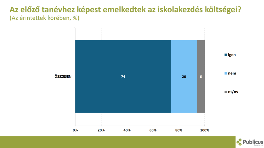 A megkérdezettek háromnegyede (74 százalék) mondta azt, hogy az előző tanévhez képest emelkedtek az iskolakezdés költségei.