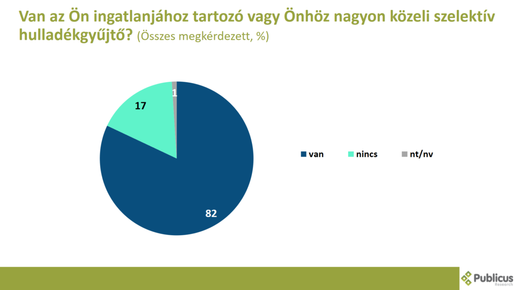 Tízből nyolc (82 százalék) válaszadó mondta azt, hogy van az ingatlanjához vagy hozzá nagyon közeli szelektív hulladékgyűjtő.