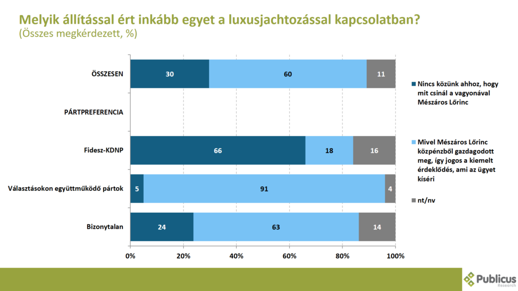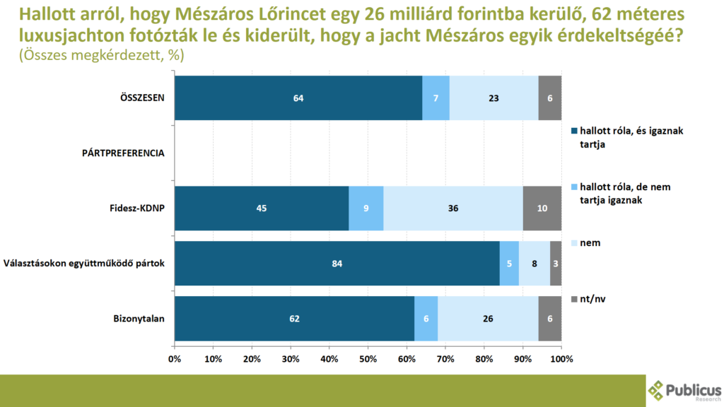 A válaszadók kétharmada hallott arról – és igaznak is tartja – hogy Mészáros Lőrincet egy 26 milliárd forintba kerülő, 62 méteres luxusjachton fotózták le és kiderült, hogy a jacht Mészáros egyik érdekeltségéé.