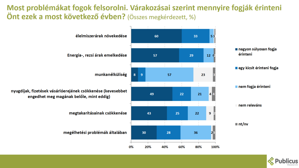 Tízből hat megkérdezett mondta azt, hogy a következő évben nagyon súlyosan fogják érinteni őt az élelmiszerárak, illetve a energia-,rezsiárak emelkedése (60 és 57 százalék).
