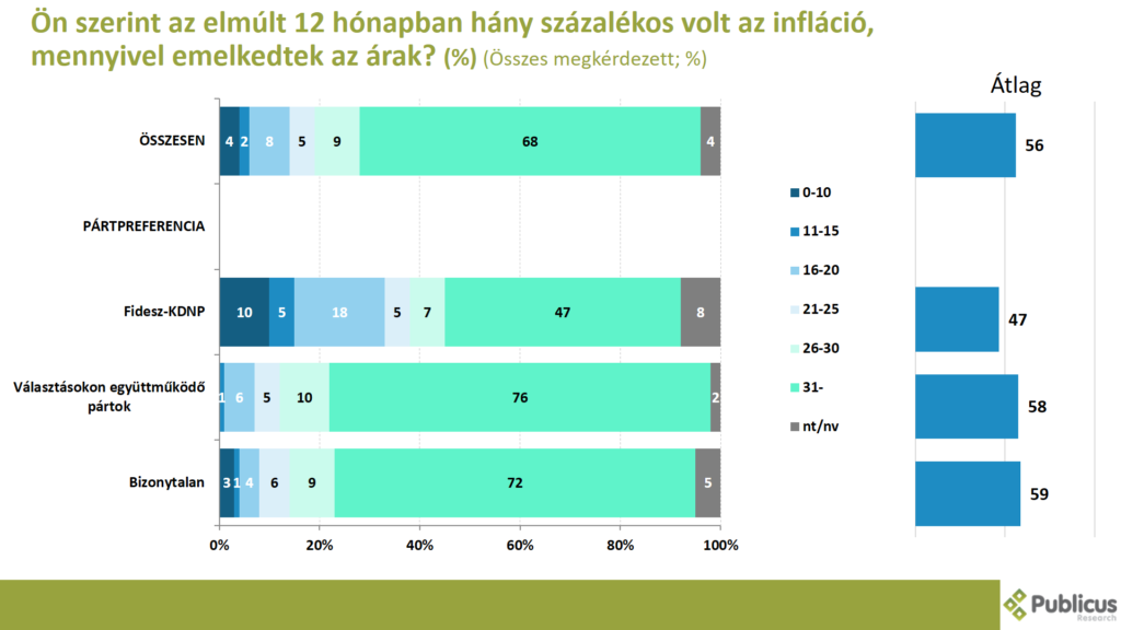 A Fidesz szavazók átlagosan 47 százalékos, a választásokon együttműködő ellenzéki pártok szavazói 58 százalékos, a bizonytalan szavazók pedig 59 százalékos áremelkedést tapasztaltak.
