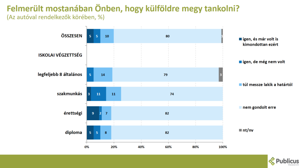 Minden tizedik (10 százalék) megkérdezett mondta azt, hogy vagy ment már külföldre kimondottan azért hogy tankoljon (5 százalék), vagy pedig felmerült már ez benne (5 százalék). Leginkább a legfeljebb 8 általánost végzettek mondták ezt (19 százalék).