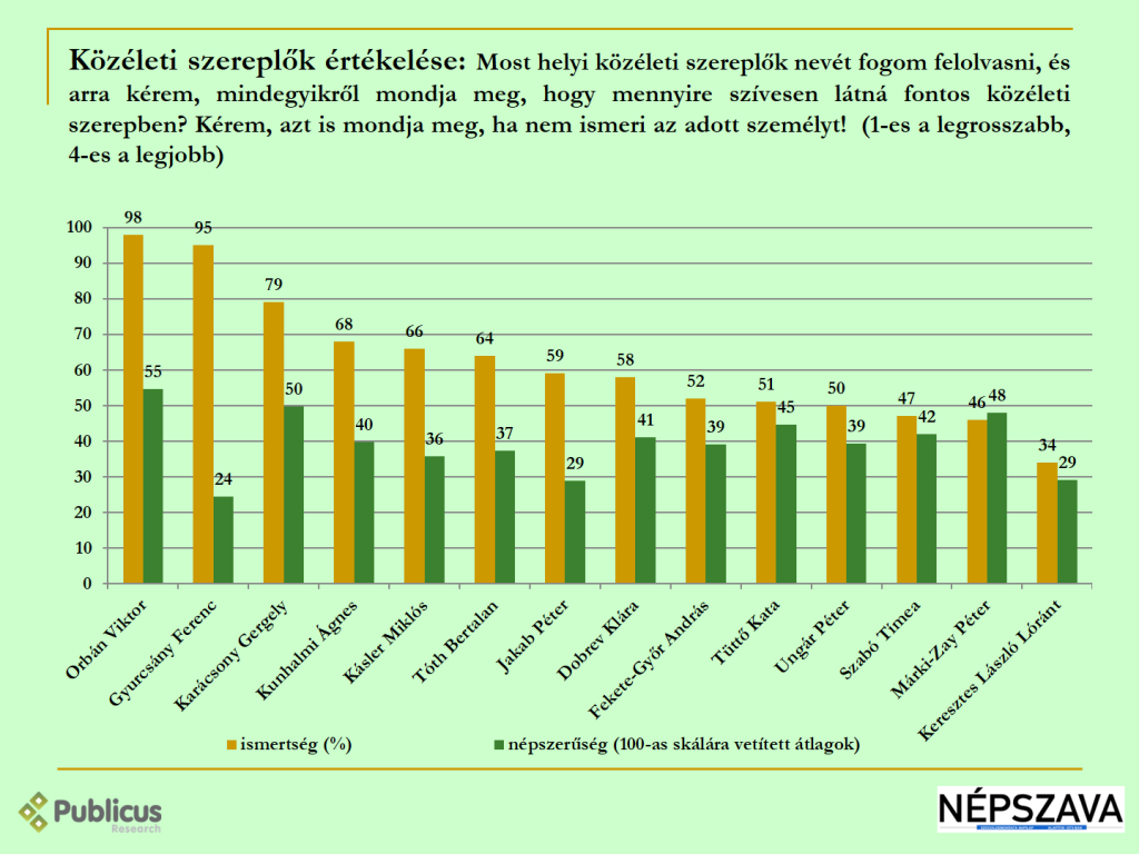 A megkérdezés során az egyes politikusok ismertsége és népszerűsége eképpen alakult: