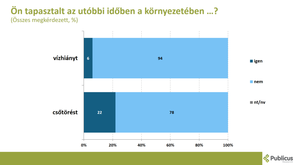 A megkérdezettek 6 százaléka tapasztalt vízhiányt, 22 százaléka pedig csőtörést a környezetében.