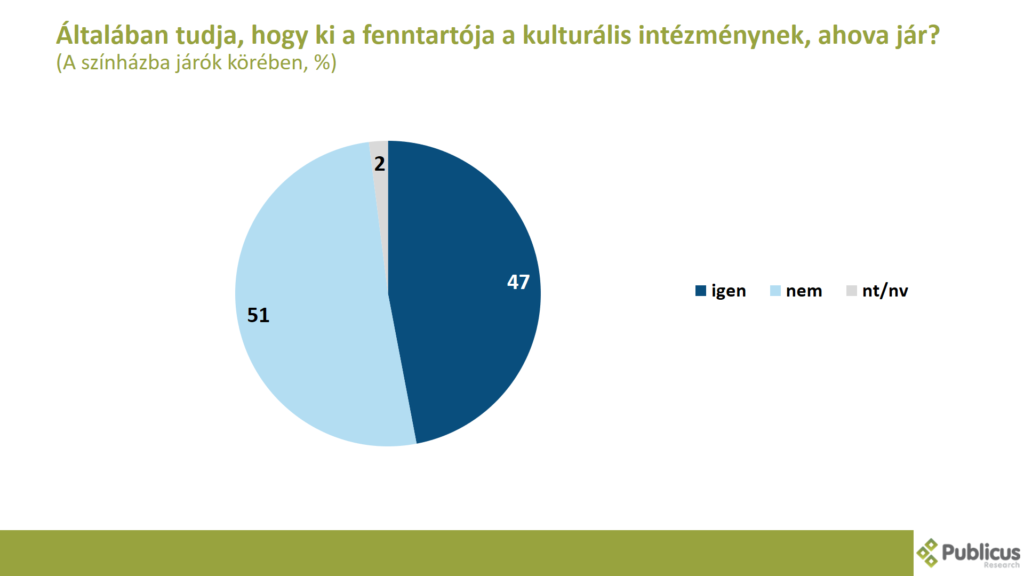 Közel minden második (47 százalék) válaszadó mondta azt, hogy általában tudja, hogy ki a fenntartója a kulturális intézménynek, ahova jár.