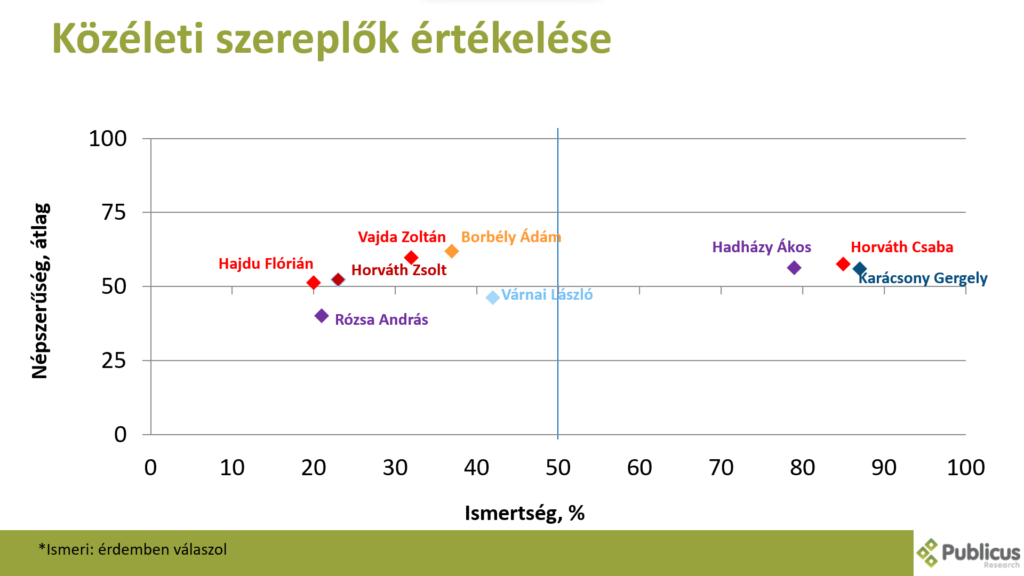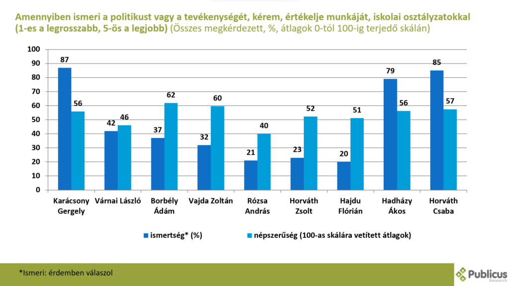 Várnai László 42 százalékos ismeretség mellett 46 százalékpontos népszerűséggel rendelkezik, Rózsa András pedig 21 százalékos ismertség mellett 40 százalékos népszerűséggel.