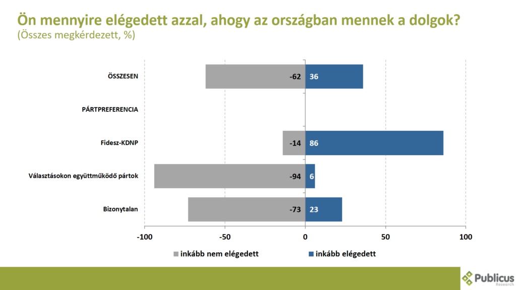Publicus Intézet augusztus 30. – szeptember 7. között 1000 fő megkérdezésével készített országos reprezentatív közvéleménykutatásban kérdezte az embereket, mennyire elégedettek azzal, ahogy az országban mennek a dolgok.