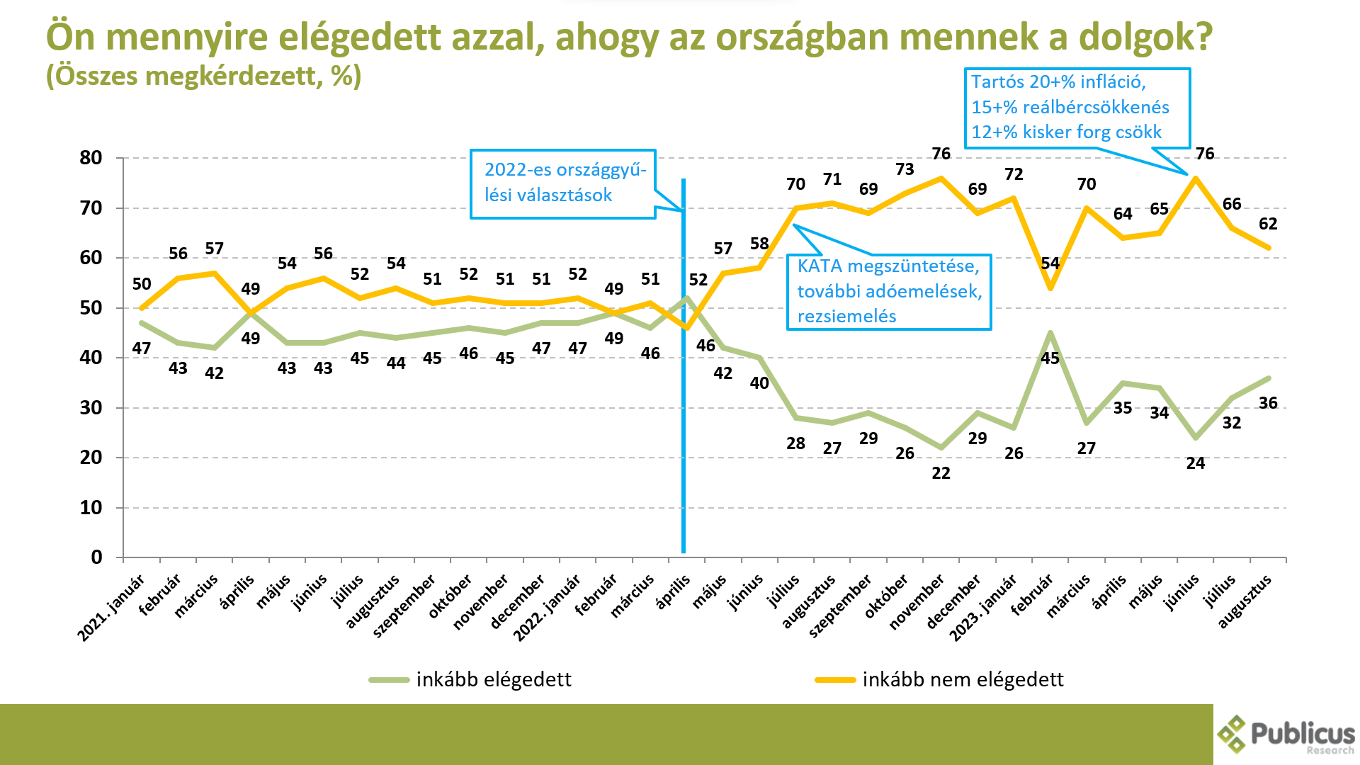 Publicus Intézet augusztus 30. – szeptember 7. között 1000 fő megkérdezésével készített országos reprezentatív közvéleménykutatásban kérdezte az embereket, mennyire elégedettek azzal, ahogy az országban mennek a dolgok.
