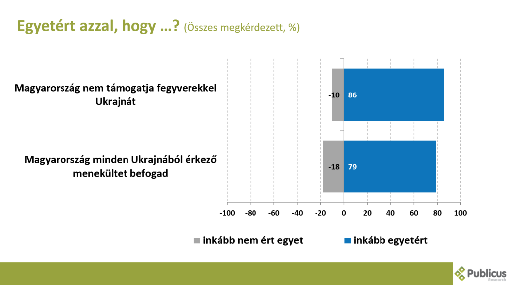 Szinte mindenki egyetértett a kormány főbb pontjaival a háború kapcsán, tízből kilencen egyetértettek azzal, hogy hazánk nem támogatja fegyverekkel Ukrajnát, és tízből nyolcan azzal, hogy befogadunk minden Ukrajnából érkező menekültet.