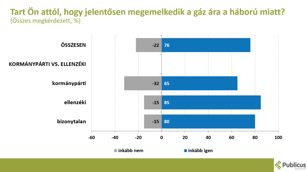 Bár az elszálló infláció, és a drámaian romló megélhetési gondok egyből jelentkeztek, és valós aggodalommal töltötték el a választókat, ők jobban bíztak abban, hogy ezen problémákat egy Fidesz-kormány tudja inkább kezelni. Kétszer annyian (47 vs. 26 százalék) gondolták azt, hogy az anyagi helyzetük romlani fog, ha az ellenzék kerül kormányra, mintha marad a Fidesz.