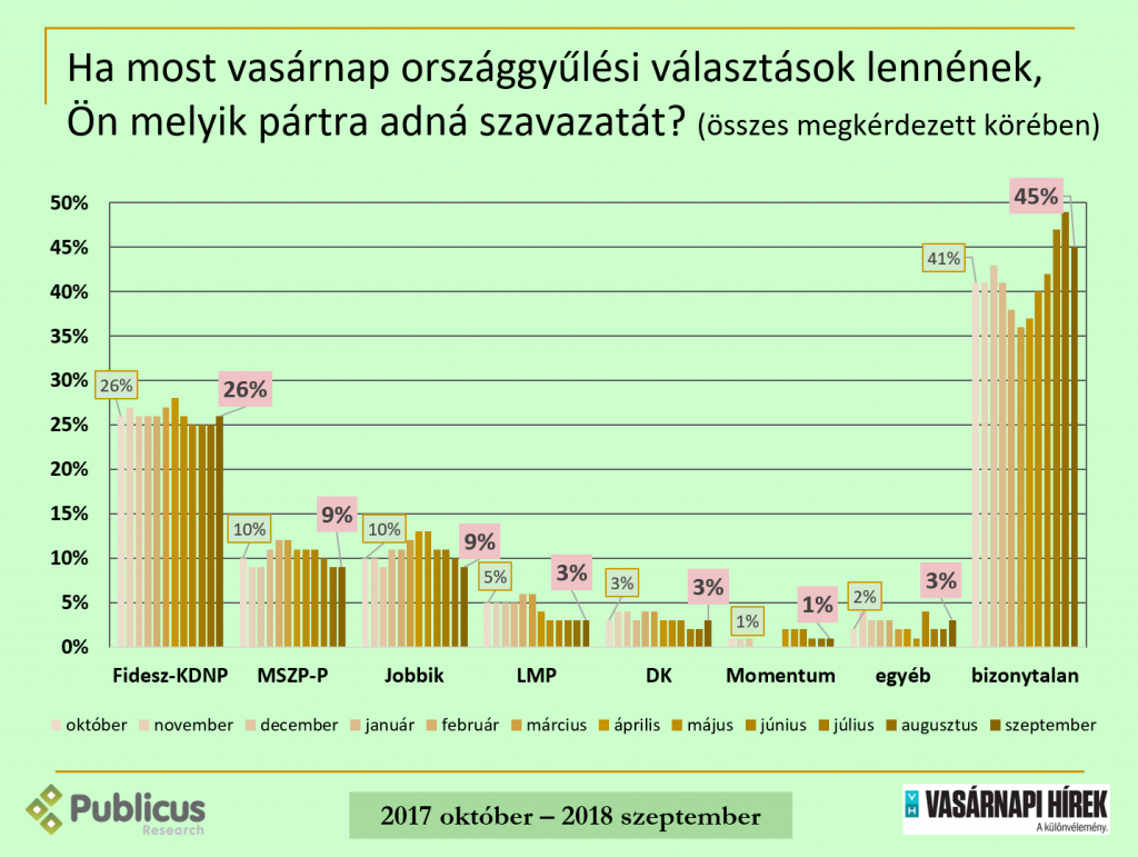 Pártok támogatottsága, 2018 szeptember
