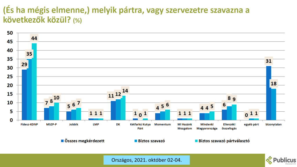 A Publicus Intézet a Népszava megbízásából október 2-4. között 1004 fő megkérdezésével készített országos reprezentatív közvéleménykutatásban vizsgálta a pártok támogatottságát.