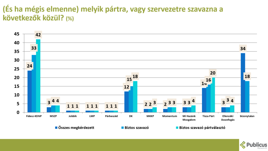 A Fidesz támogatottsága az összes megkérdezett körében 24 százalék.