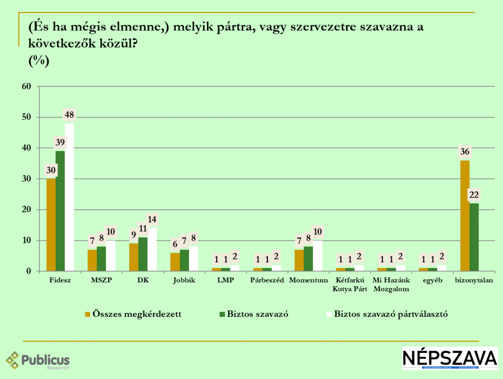 A Momentum támogatottsága az összes megkérdezett körében 7 százalék