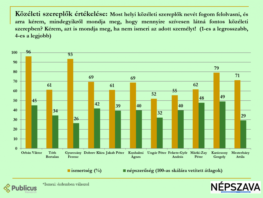 Egyes politikusok népszerűsége az kutatás során eképpen alakult: