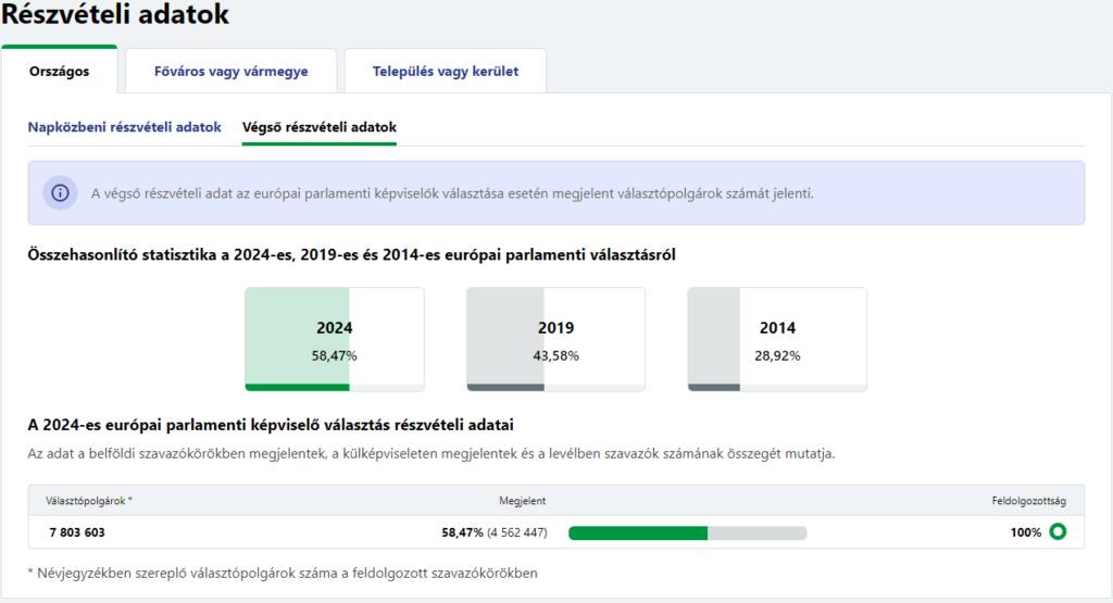 ✅ Részvétel: 58,47 százalék — 56,48 százalék (különbség: 1,99 százalékpont)