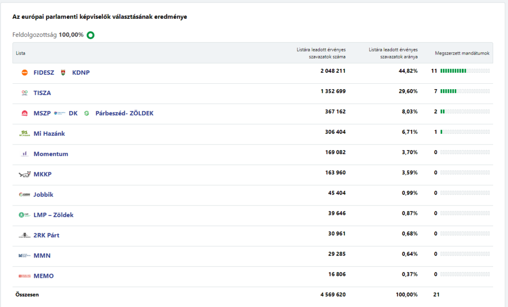 👉 Pontos volt, hogy melyik párt fog mandátumot szerezni.