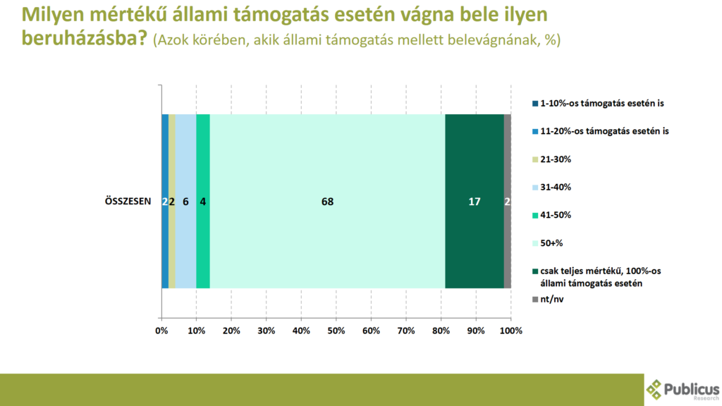 Azok közül, akik állami támogatás mellett belevágnának egy ilyen beruházásba, tízből heten mondták azt, hogy 50 százalék feletti állami támogatás esetén tennének így.