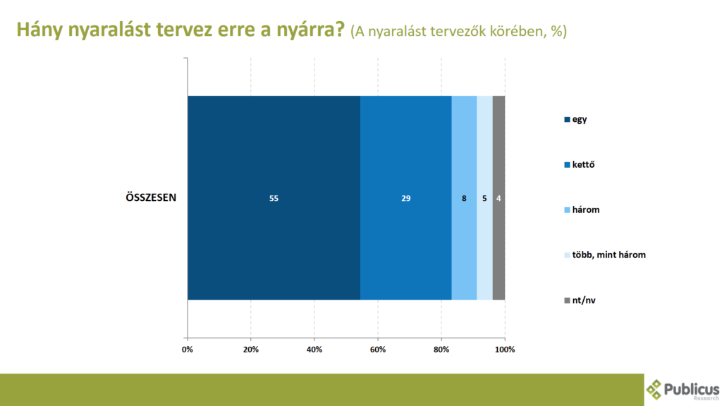 A nyaralást tervezők körében a többség (55 százalék) egy, tízből hárman (29 százalék) kettő, 8 százalék három, 5 százalék pedig több mint három nyaralást tervez.