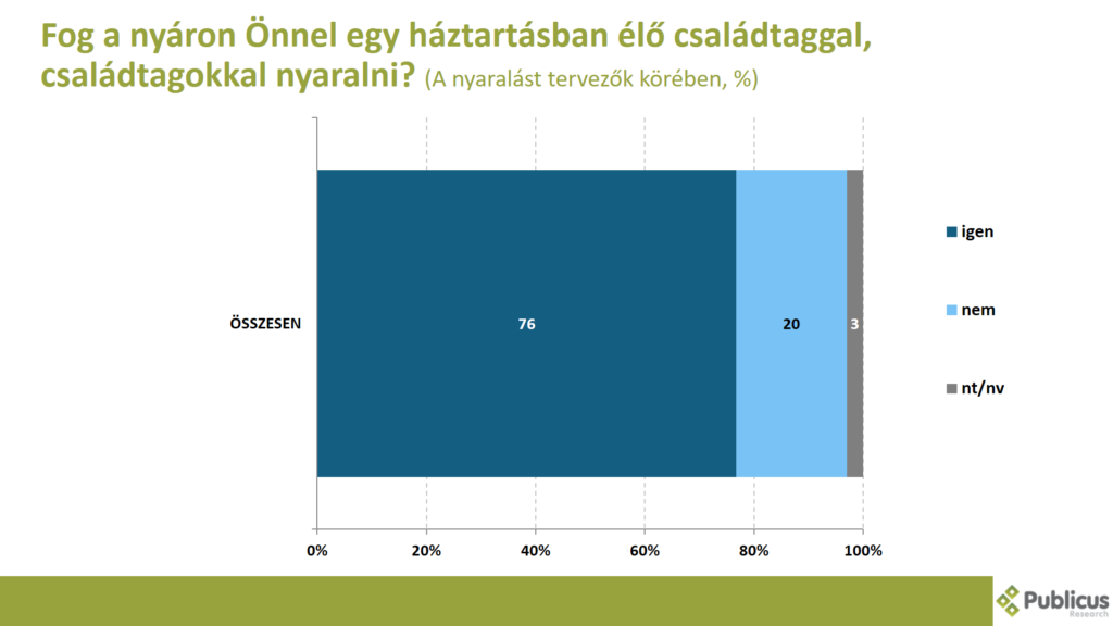 A nyaralást tervezők körében a válaszadók háromnegyede mondta azt, hogy fog a nyáron vele egy háztartásban élő családtaggal, vagy családtagokkal nyaralni.
