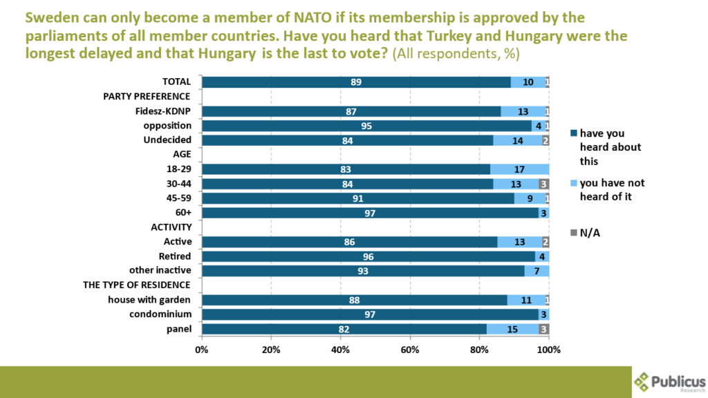 Nine out of ten (89%) of those polled had heard that Turkey and Hungary had delayed the vote the longest, with Hungary coming last. This was the response of almost all (95 percent) of the voters of the opposition parties that cooperated in the elections, nine out of ten (87 percent) Fidesz voters and a large majority (84 percent) of undecided voters.